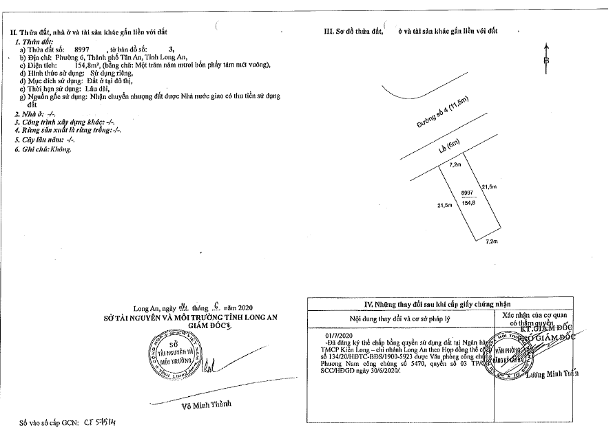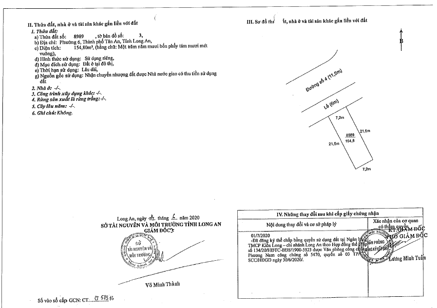 - QSDĐ tại 8 thửa đất số 8971, 8973, 8977, 8979, 8981, 8987, 8989, 8997 - Tờ bản đồ số 3 - LK 11, Đường số 6 (KĐT TTHC), Phường 6, TP Tân An, Long An (Nay là Phường Long An, Tỉnh Tây Ninh)