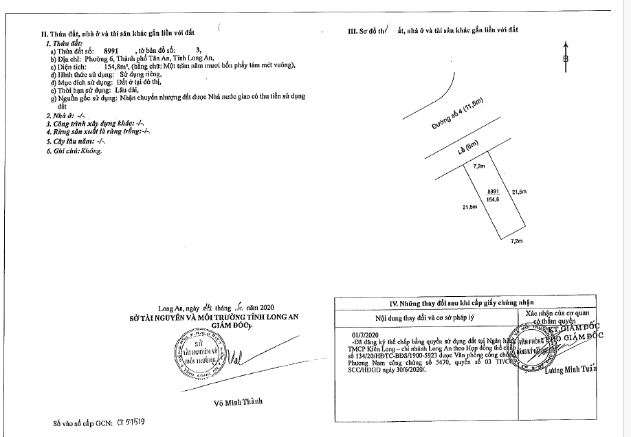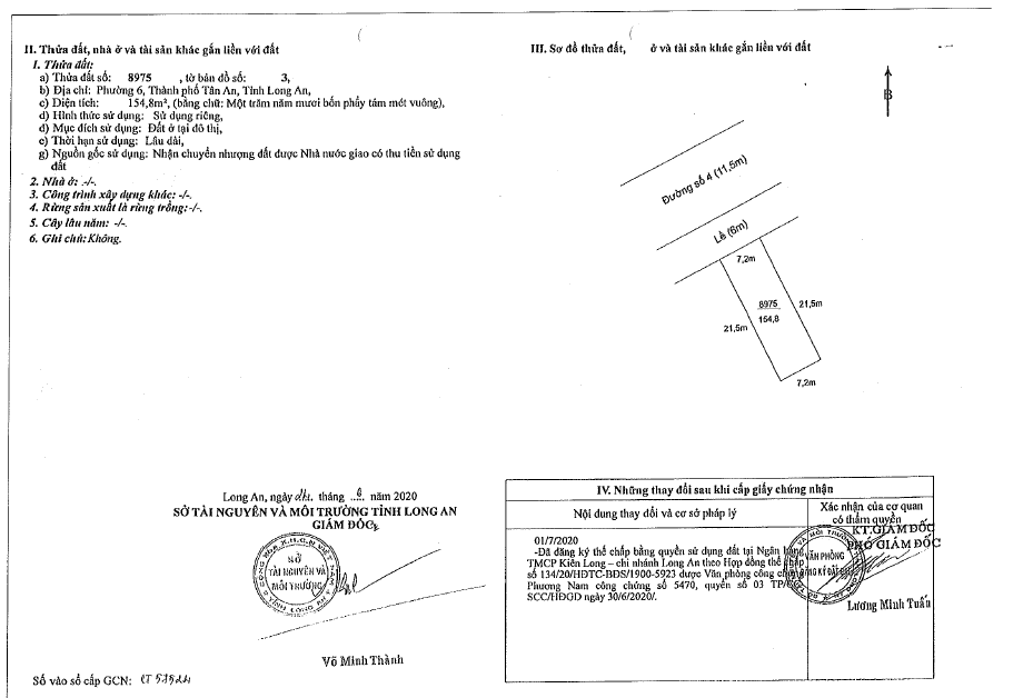- QSDĐ tại 2 thửa đất số 8975, 8991 - Tờ bản đồ số 3 - LK 11, Đường số 6 (KĐT TTHC), Phường 6, TP Tân An, Long An (Nay là Phường Long An, Tỉnh Tây Ninh)