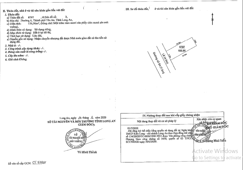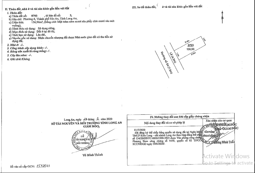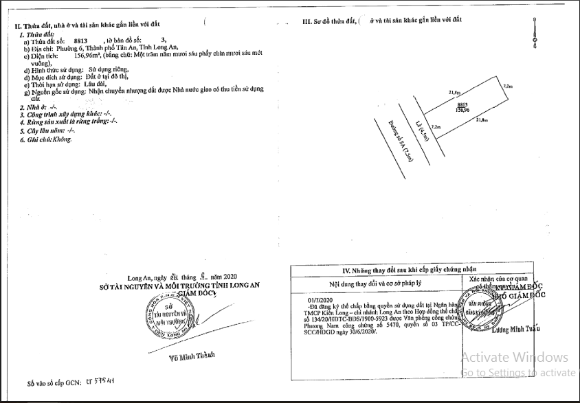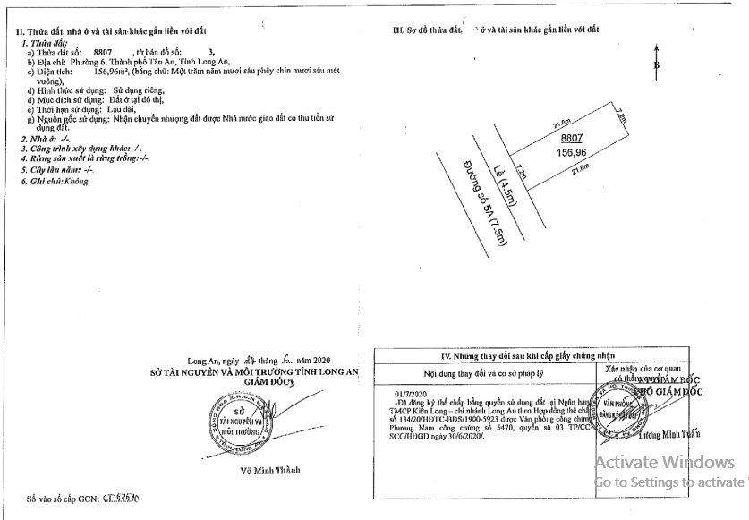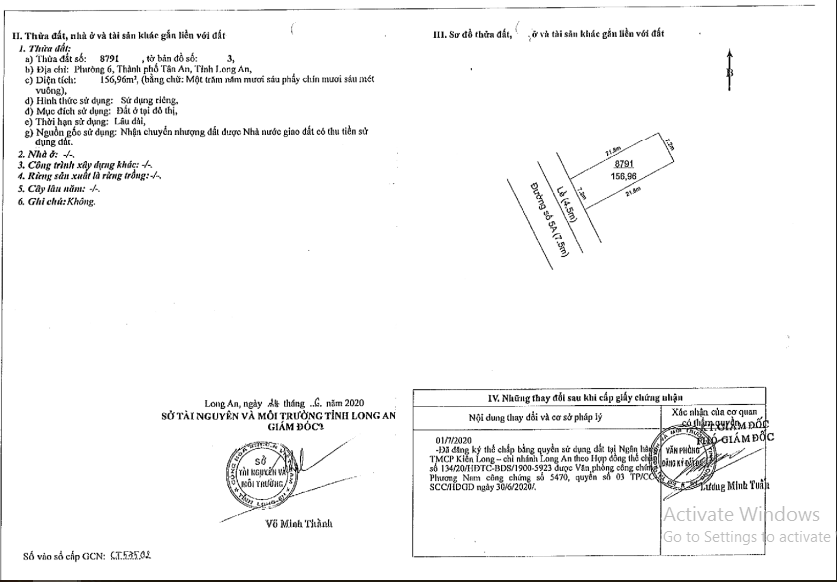 - Tài sản gồm 7 thửa đất số 8791; 8793; 8797; 8799; 8807; 8809; 8813 cùng tờ bản đồ số 3 - LK 15, Đường số 5A (KĐT TTHC), Phường 6, TP Tân An, Long An (nay là phường Long An, tỉnh Tây Ninh).