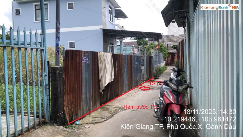- Tài sản tọa lạc tại thửa số 76 - Tờ bản đồ số 72, KP8, Ngô Quyền, TT Dương Đông, Huyện Phú Quốc, Kiên Giang (Nay là KP 8 Dương Đông, Đặc Khu Phú Quốc, Tỉnh An Giang). Tài sản ở vị trí hẻm chính (bê tông) rộng # 2m, cách đường Ngô Quyền (Đoạn từ Cầu Samaco - Nguyễn Huệ) khoảng 20m.