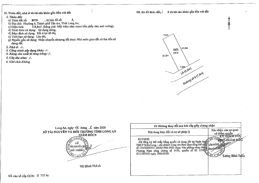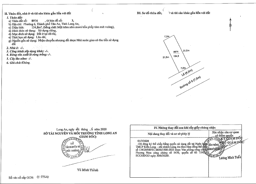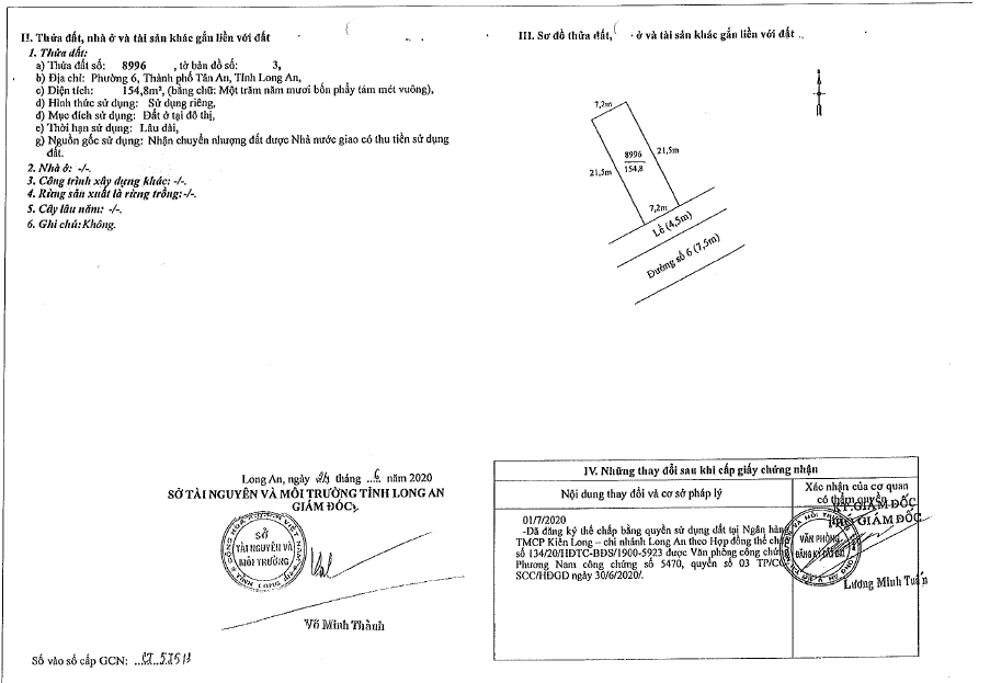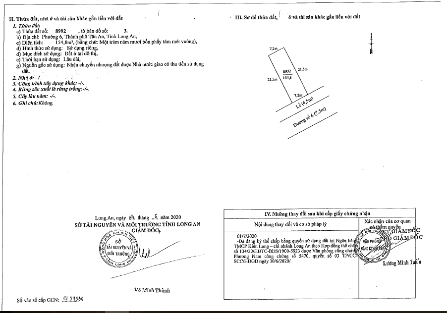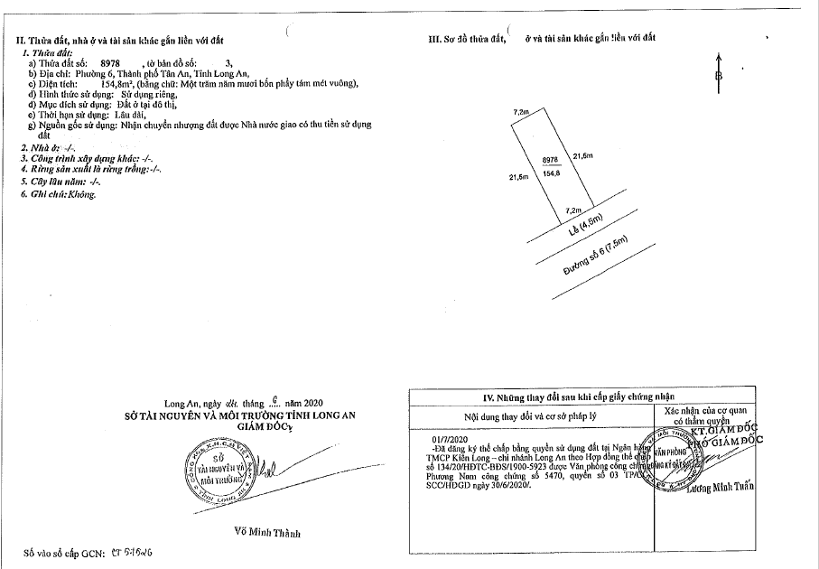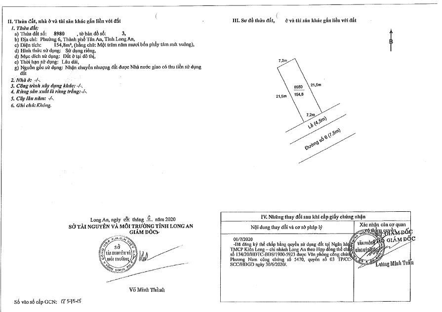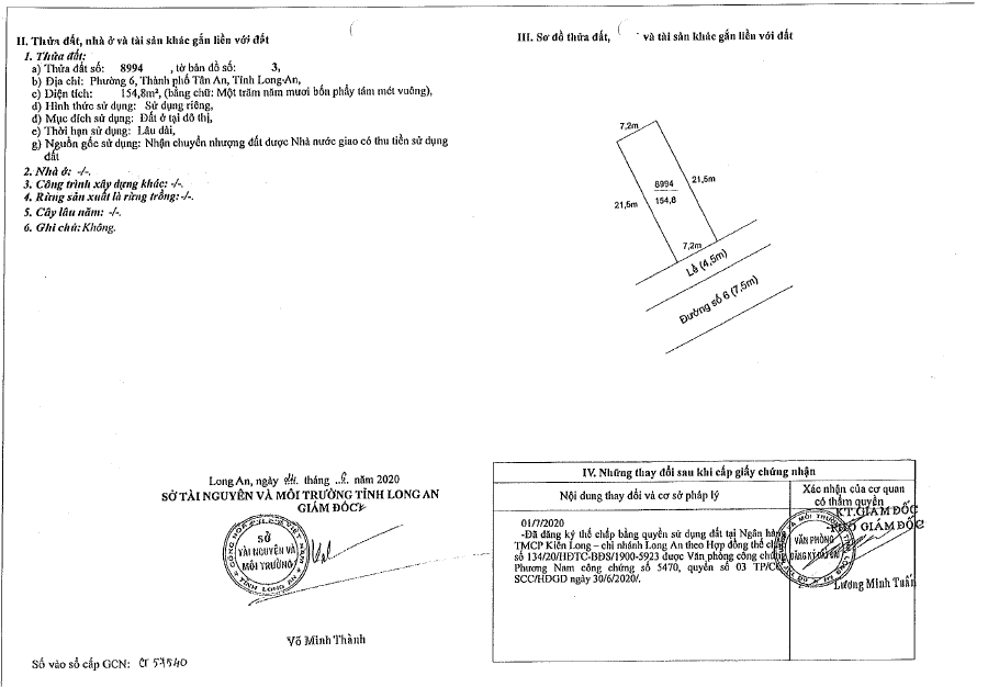 - QSDĐ tại thửa đất số 8970, 8972, 8974, 8978, 8980, 8992, 8994, 8996 - Tờ bản đồ số 3 - LK 11, Đường số 6 (KĐT TTHC), Phường 6, TP Tân An, Long An (Nay là Phường Long An, Tỉnh Tây Ninh)